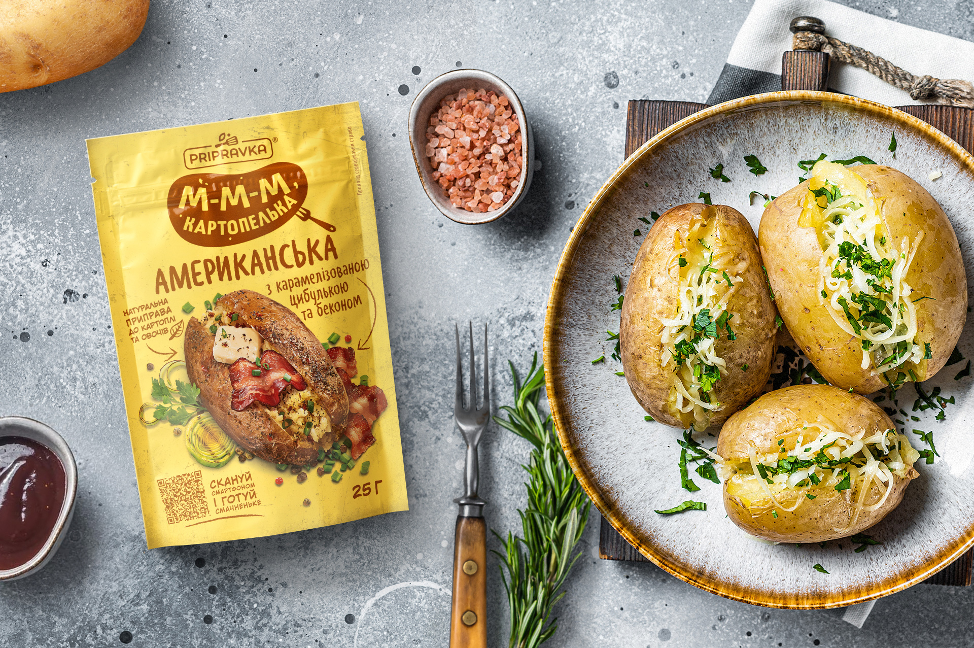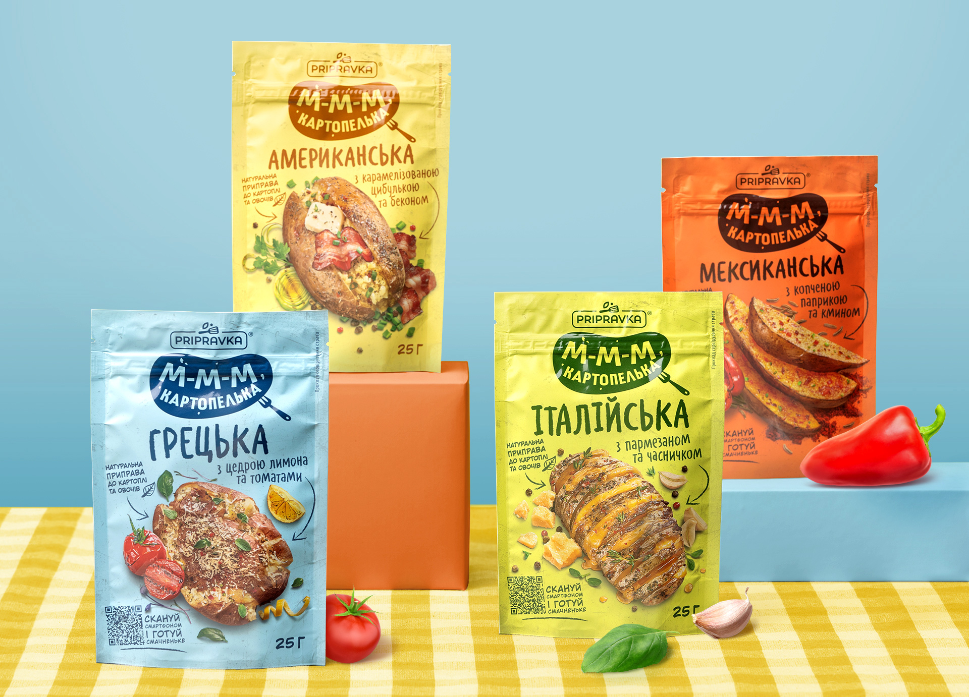 Більшості з нас страви з картоплі здаються дуже звичними і повсякденними. А от ТМ «Приправка» вирішила спростувати цю думку своєю новою серією приправ «М-М-М картопелька». Це приправи до картоплі та овочів з унікальними інгредієнтами — пармезаном, копченими помідорами, беконом та копченою паприкою.