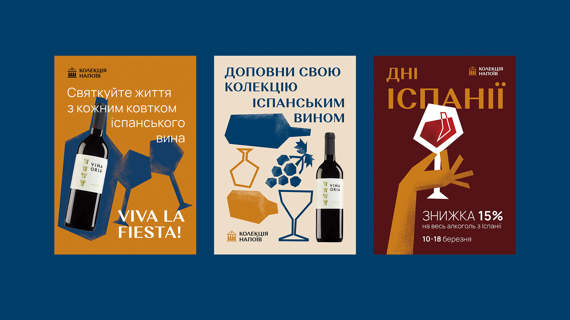 Щоб підкреслити ставлення до алкоголю як до мистецтва, ми використовуємо стилізовані зображення різних картинних рам, які доповнюємо фірмовими ілюстраціями у поєднанні з фрагментами класичних живописних полотен різних епох. Також в комунікації бренду передбачено використання персонажів — ними стали герої картин, присвячених вину та іншим видам алкоголю.