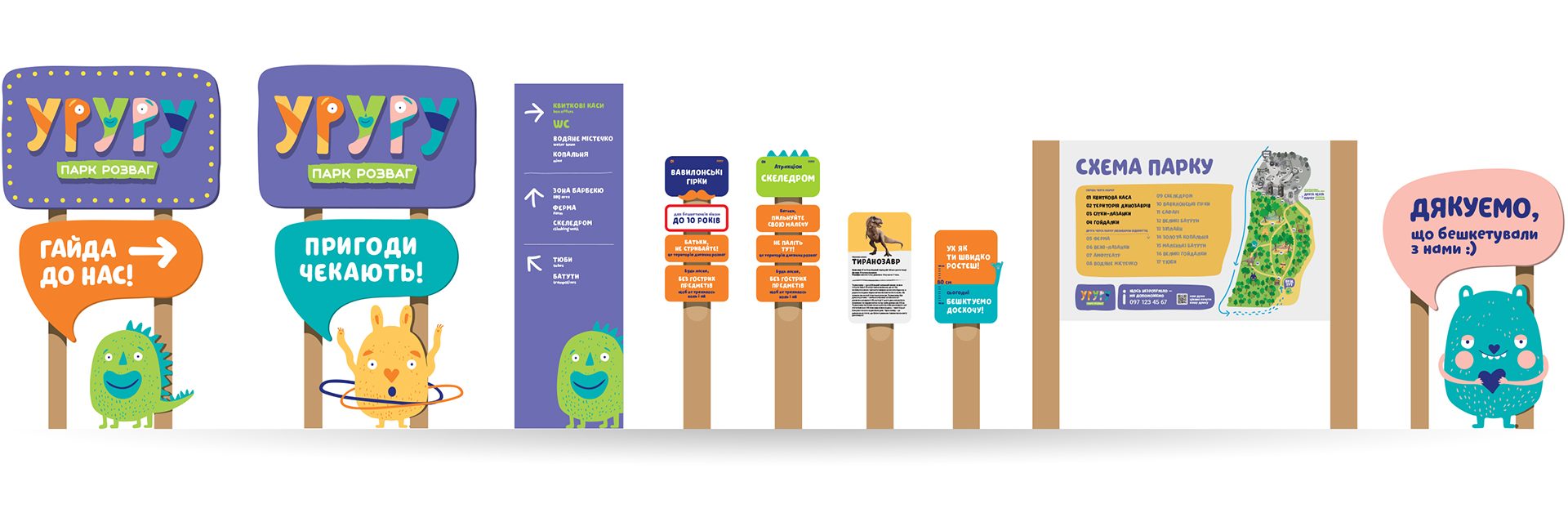 Ну і власне, щоб парк розваг міг «спілкуватись» як з малечею так і з дорослими, для нього необхідно було створити логотип, знайти правильний характер та тон комунікації, розробити безліч брендових матеріалів та елементів навігації.